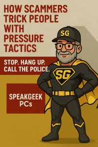 If you or someone you care about ever gets a strange call, text, or email, reach out to SpeakGeek PCs.