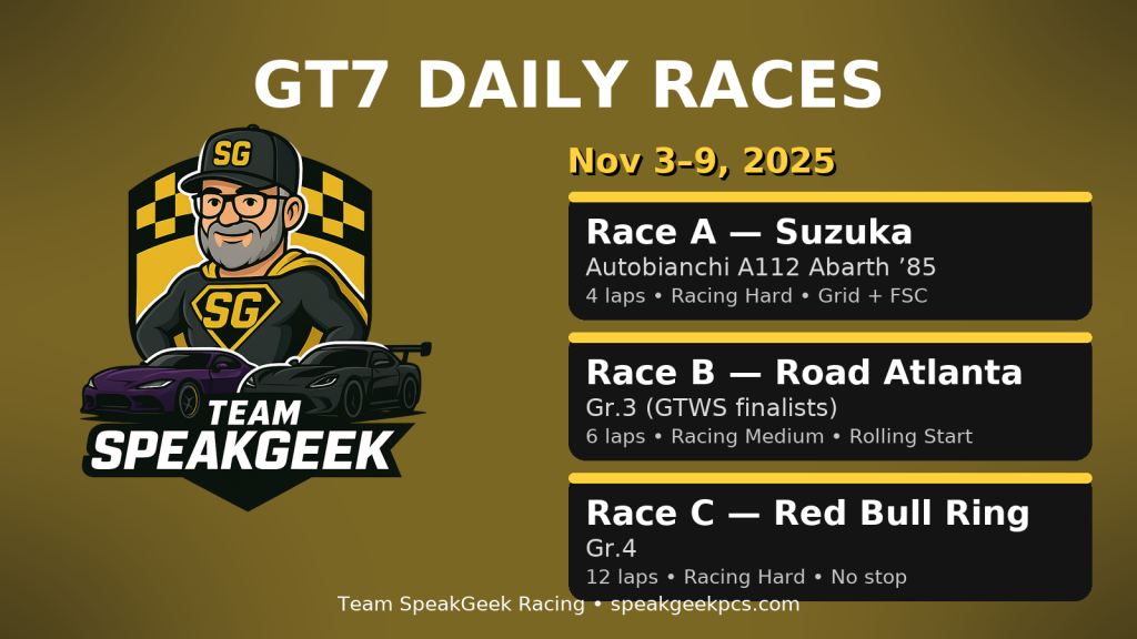| Daily Races (Nov 3 β Nov 9, 2025) | |